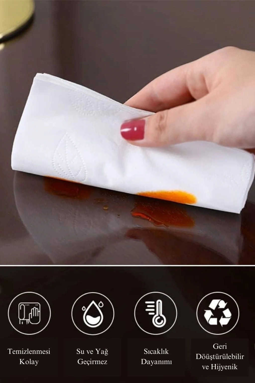 - Şeffaf tasarımı ile masa yüzeyinizi korurken, şıklığınızı da ön plana çıkarır.; - Turuncu renk seçeneğiyle mekanınıza canlılık katar ve dekorasyonunuza uyum sağlar.; - Yüksek kaliteli plastik materyali sayesinde uzun ömürlü kullanım sunar.; - Düz deseniyle sade ve modern bir görünüm elde edersiniz; her türlü masa düzenine kolayca adapte olur.; - Muşamba özelliği ile suya ve lekelere karşı dayanıklılık gösterir, böylece masanızın temizliğini kolayca koruyabilirsiniz.; - Pratik dikdörtgen şekli sayesinde standart masa ölçülerine mükemmel uyum sağlar ve kesintisiz kullanım imkanı tanır.; - Tek adet olarak sunulan bu ürün, ihtiyacınız olan tek parça halinde gelerek ekstra masraf yapmanızı engeller.; - Type0 yıkama talimatına sahip olmasıyla temizliği kolaydır; pratiklik kazandırarak zamandan tasarruf etmenize yardımcı olur.; - Üretim kaynağı Çin'den gelen bu ürün, uluslararası kalite standartlarına uygun olarak üretilmiştir.; - 100 x 70 cm boyutlarındaki geniş yüzey alanı ile geniş masalar dahil olmak üzere çeşitli boyutlardaki masalar için idealdir.; - İstanbul Mefruşat San.; ve Tic.; A.; Ş.; tarafından ithal edilmiş olup, yetkili temsilcisi olarak güvenle tercih edebilirsiniz.