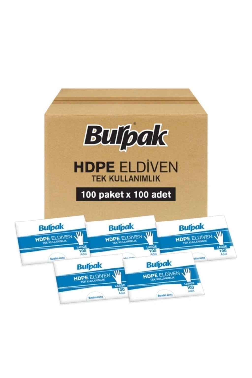 Burpak 100lü paket tek kullanımlık hdpe (şeffaf /poşet ) eldiven large 12 kutu (kutuda 100'lü 12 paket) 100lü paket tek kullanımlık hdpe (şeffaf /poşet ) eldiven large 12 kutu (kutuda 100'lü 12 paket) ;