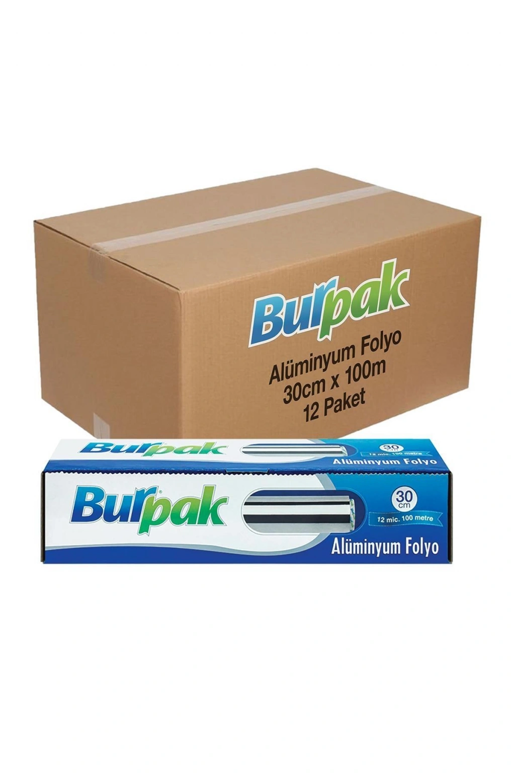 Burpak Alüminyum Folyo 30cm x 100m 12mic x 12 Paket (Koli) 30 cm genişliğinde ve 100 m uzunluğunda, 12 mikron kalınlığında alüminyum folyo.; Yiyeceklerin sıcaklığını korur ve tazeliğini muhafaza etmeye yardımcı olur.; Buzdolabında saklama ve fırında pişirme için uygundur.; Restoranlar, oteller ve profesyonel mutfaklar için ideal bir çözümdür.; Koli içinde 12 adet bulunur, toplu alımda ekonomik avantaj sağlar.
