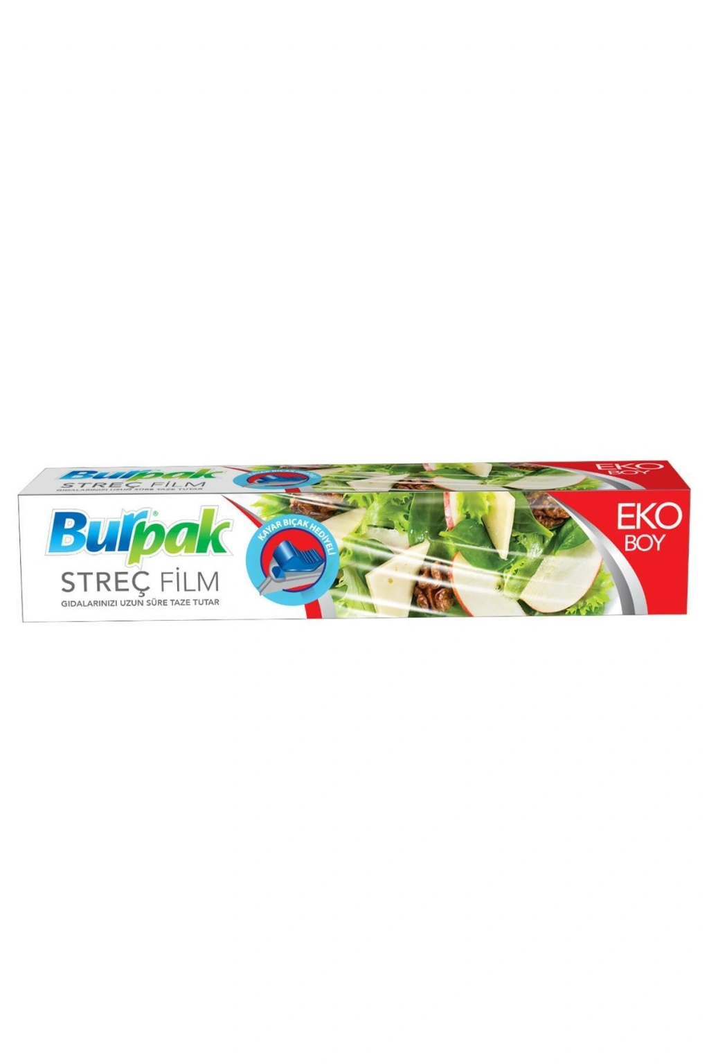 Burpak Kayar Bıçak Hediyeli Streç Film 30cm x 166m 10mic 1 Adet 30 cm genişliğinde ve 166 m uzunluğunda, 10 mikron kalınlığında streç film.; Yiyecekleri sarmak, muhafaza etmek ve taze tutmak için idealdir.; Kayar bıçak hediyesi ile pratik kullanım sağlar, istediğiniz boyutta kesim yapmanıza yardımcı olur.; Streç film, gıda ile temas halinde güvenli kullanım için tasarlanmıştır ve yiyeceklerin taze kalmasını sağlar.