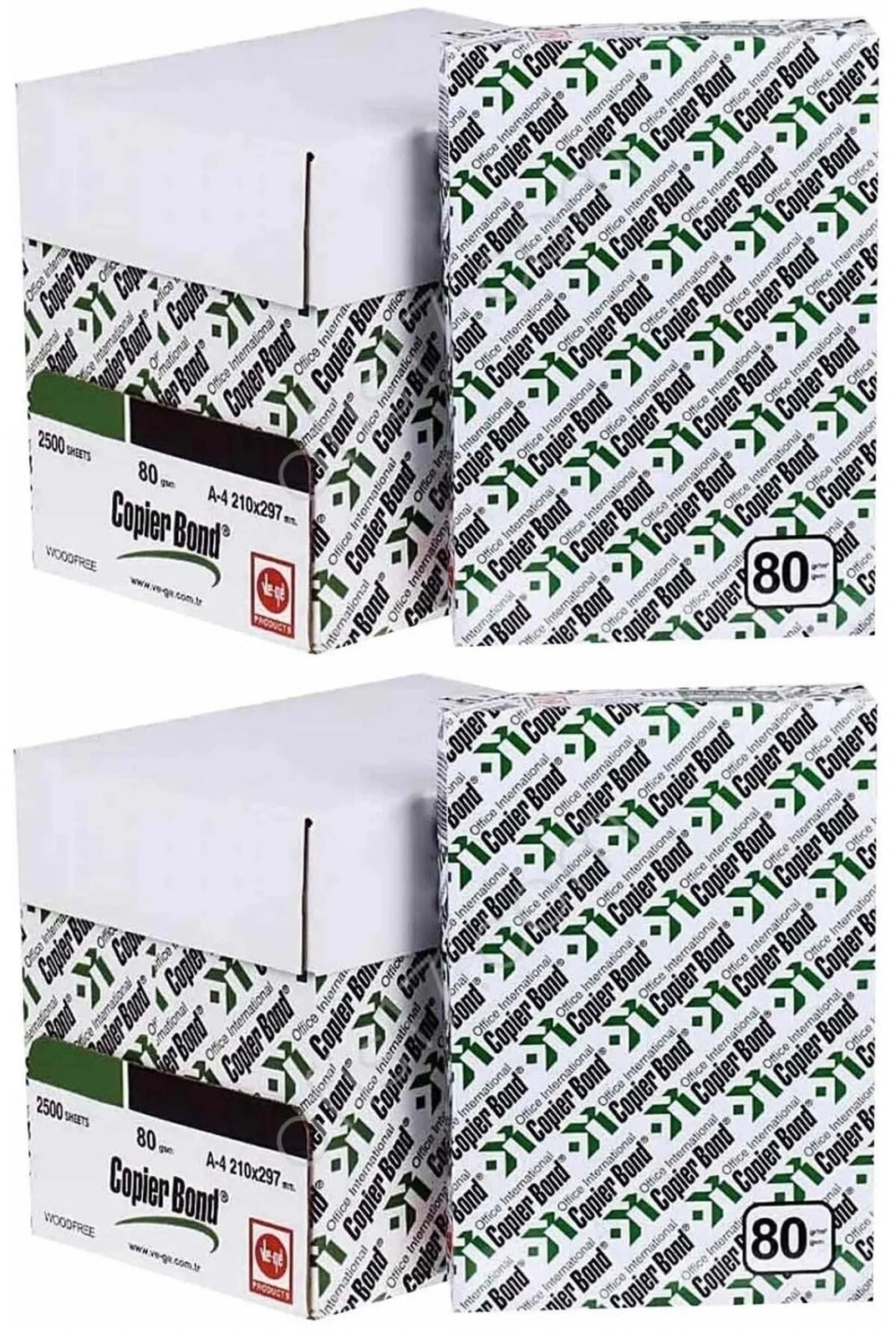 Copier Bond (Ve; Ge) A4 80GR/M2 Fotokopi Kağıdı 5000 Adet (10PK*500) Ve; Ge Copier Bond A4 80 g/m² 500 Ad; Fotokopi Kağıdı Ofislerde ve kurumlarda günümüzün her anında dijital baskı teknolojileri ile işlerimizi halletmeye çalışırız; Bu durum ise bizi sürekli elimizin altında kağıt bulundurma ihtiyacına yönlendirir; Fotokopi kağıdı fiyatları incelenirken, en ucuz kağıtlardan ziyade kaliteli ve ürünleri tercih etmek, uzun vadede daha hesaplı olacaktır; Bu bağlamda en iyi fotokopi kağıdı üreticilerinden biri olan, Türkiye'nin en çok tercih edilen fotokopi markası COPIERBOND ile günlük işlerinizi kolaylıkla halledebilirsiniz; Çevre Politikası Enerji ve doğal kaynakların verimli kullanılmasına yönelik çalışmalar, firmalar üzerinde büyük bir bilinç oluşturmuştur; Ürünün üretim aşamasından geri dönüşüm aşamasına kadar olan tüm süreçlerinde olumsuz çevresel etkilerin azaltılması, faaliyetlerde iklim değişikliği ve sürdürülebilirliğin öncelikli kılınması gerekmektedir; Sürdürülebilirlik Politikası, küreselleşen dünyamızda en önemli politikalardan biri haline gelmiştir; Toplu ve bireysel olarak alınan önlemler büyük kuruluşları da bu platformda gelişmeye yönlendirmiştir; Üretici firmalar enerji ve doğal kaynakların verimli kullanılmasına yönelik katılımlarla çevreye duyarlı bir şekilde satışa sunmak için yöntemler geliştirirken, tedarikçi firmalar ise geri dönüşümü mümkün ürünler tercih etmek isteyerek bu zinciri sürdürmeye çalışır; Ekolojik Denge için Teknoloji Ve; ge firması toplumun çevre bilincinin arttırılması yönünde faaliyetlerini Kalite, Enerji, İş Sağlığı ve Güvenliği Yönetim Sistemleri ile birlikte bütünleşik bir şekilde yöneterek, sektöründe örnek bir kuruluş olmak için çalışır; Uygulama Alanları Fotokopi, dijital baskı, kitap, yazı, evrak, kişisel kullanım vb; Kullanım ve Depolama Orijinal ambalajı açılmadan önce kağıt, ortam şartlarına uyum sağlayabilmesi için makine ile aynı ortamda bulundurulmalıdır; Yüksek sıcaklık, nem, toz, ısı gibi etkenlerden uzakta muhafaza edilmelidir; Ürünler kullanım zamanına kadar ambalajından çıkarılmamalıdır; Ürün Özellikleri · 210 x 297 mm (A4) · Türk Menşei · %100 beyazlık · 80 g/m2 500 Yaprak;;
