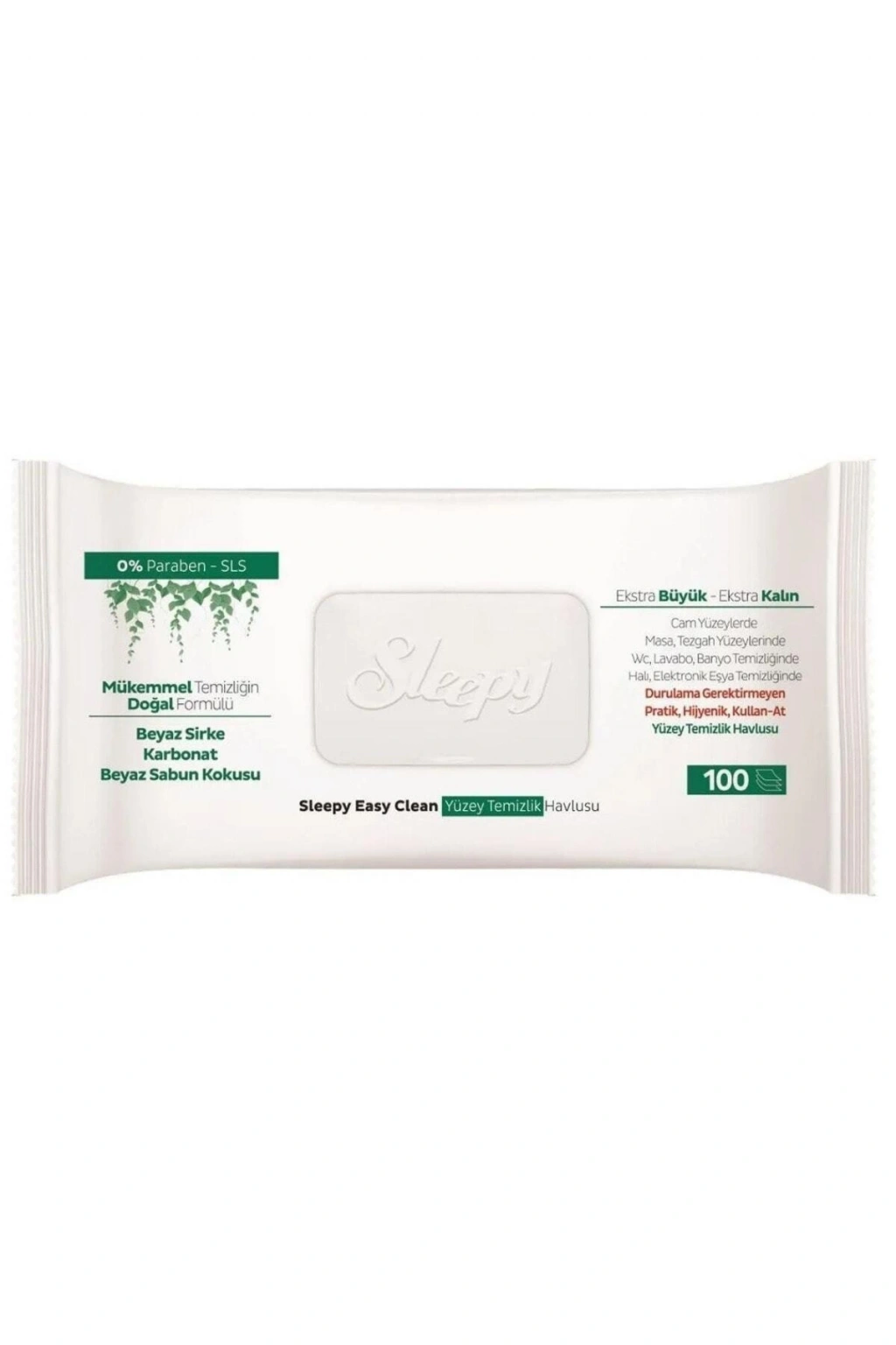 Sleepy Easy Clean Yüzey Temizlik Havlusu 100' lü x 3 Adet (300 Yaprak), Mükemmel Temizliğin Doğal Formülü Beyaz Sire, Karbonat, Beyaz Sabun Kokusu %0 Paraben - SLS Ekstra Büyük - Ekstra Kalın İz Bırakmayan Doğal İçerikli Formül Cam Yüzeylerde Masa, Tezgah Yüzeylerinde WC, Lavabo, Banyo Temizliğinde Halı, Elektronik Eşya Temizliğinde Durulama Gerektirmeyen Pratik, Hijyenik, Kullan - At Yüzey Temizlik Havlusu Faydaları: Beyaz sirke ve karbonat içeren doğal içeriği sayesinde, sık temas edilen tüm yüzeylerde durulama gerektirmeden ve iz bırakmadan mükemmel temizlik sağlar. ; Beyaz sabun kokusu ferahlatıcı etki sağlar. ; Kullan-at özelliği sayesinde pratik ve hijyeniktir. ; Ekstra büyük, ekstra kalın özelliği sayesinde, tek yaprak ile mükemmel temizlik sağlar. ; Yer kaplamaz, alandan tasarruf sağlar.;