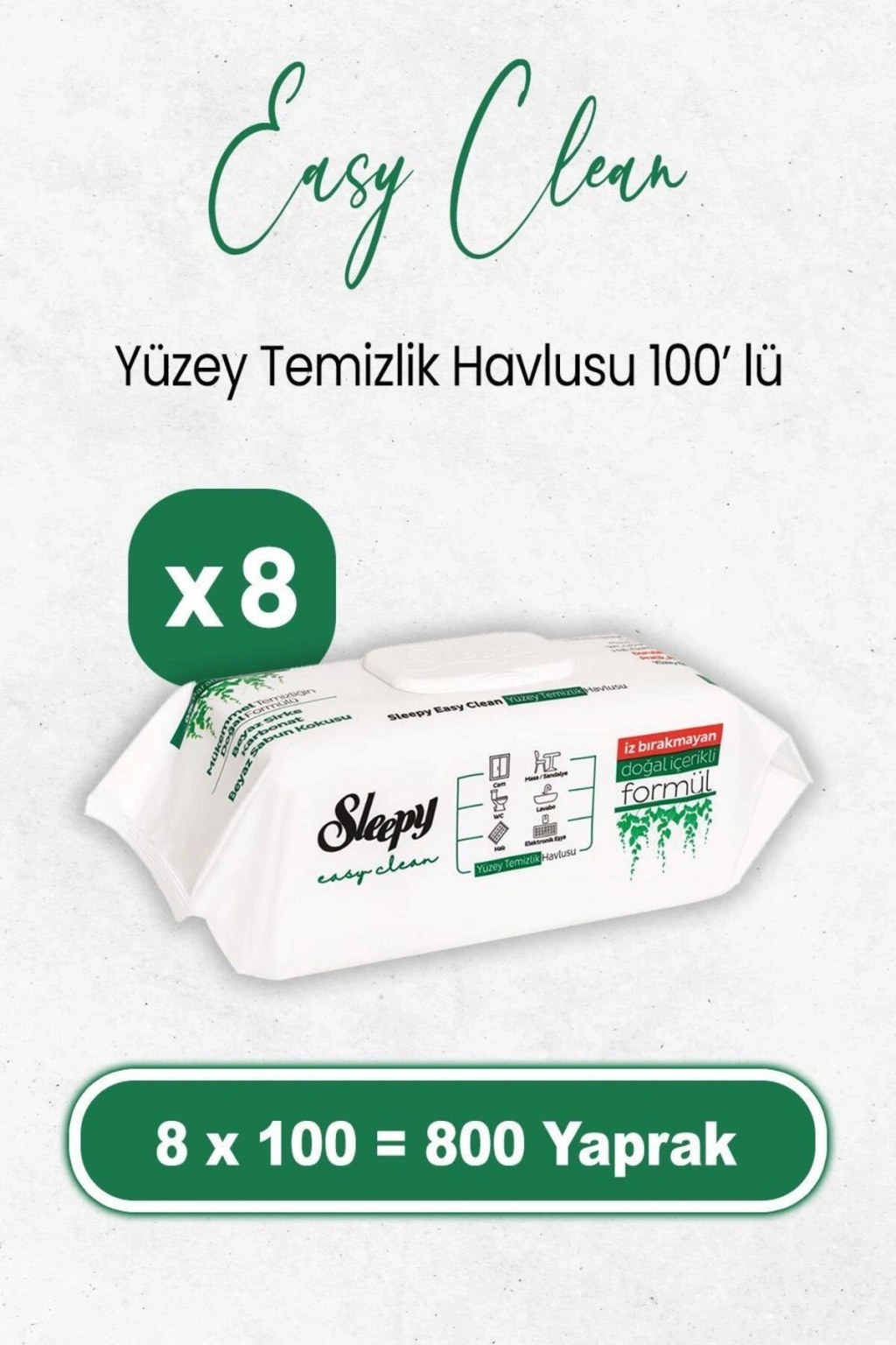 Sleepy Easy Clean Yüzey Temizlik Havlusu 100 x 8 Adet (800 Yaprak) Mükemmel Temizliğin Doğal Formülü Beyaz Sire, Karbonat, Beyaz Sabun Kokusu %0 Paraben - SLS Ekstra Büyük - Ekstra Kalın İz Bırakmayan Doğal İçerikli Formül Cam Yüzeylerde Masa, Tezgah Yüzeylerinde WC, Lavabo, Banyo Temizliğinde Halı, Elektronik Eşya Temizliğinde Durulama Gerektirmeyen Pratik, Hijyenik, Kullan - At Yüzey Temizlik Havlusu Faydaları: Beyaz sirke ve karbonat içeren doğal içeriği sayesinde, sık temas edilen tüm yüzeylerde durulama gerektirmeden ve iz bırakmadan mükemmel temizlik sağlar. ; Beyaz sabun kokusu ferahlatıcı etki sağlar. ; Kullan-at özelliği sayesinde pratik ve hijyeniktir. ; Ekstra büyük, ekstra kalın özelliği sayesinde, tek yaprak ile mükemmel temizlik sağlar. ; Yer kaplamaz, alandan tasarruf sağlar.;