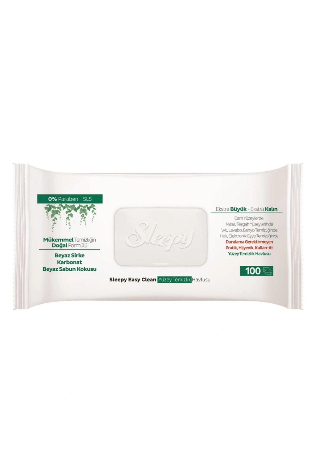 Sleepy Easy Clean Yüzey Temizlik Havlusu 100 Yaprak Plastik Kapaklı (9 Lu Set) 900 Yaprak Sleepy Easy Clean Yüzey Temizlik Havlusu Mükemmel Temizliğin Doğal Formülü Beyaz Sirke Karbonat Beyaz Sabun Kokusu , 0% Paraben - SLS Ekstra büyük ve Ekstra Kalın İz Bırakmayan doğal içerikli formül Kullanım alanları : Cam yüzeylerde Masa, Tezgah Banyo Temizliğinde Halı, Elektronik Eşya Temizliğinde Durulama Gerektirmeyen Pratik, Hijyenik, Kullan-At Yüzey Temizlik Havlusu Faydaları: Beyaz sirke ve karbonat içeren doğal içeriği sayesinde sık temas edilen tüm yüzeylerde durulama gerektirmeden ve iz bırakmadan mükemmel temizlik sağlar. ; Beyaz sabun kokusu ferahlatıcı etki sağlar Kullan-at özelliği sayesinde pratik ve hijyeniktir. ; Ekstra büyük, ekstra kalın özelliği sayesinde, tek yaprak ile mükemmel temizlik sağlar Yer kaplamaz alandan tasarruf sağlar;