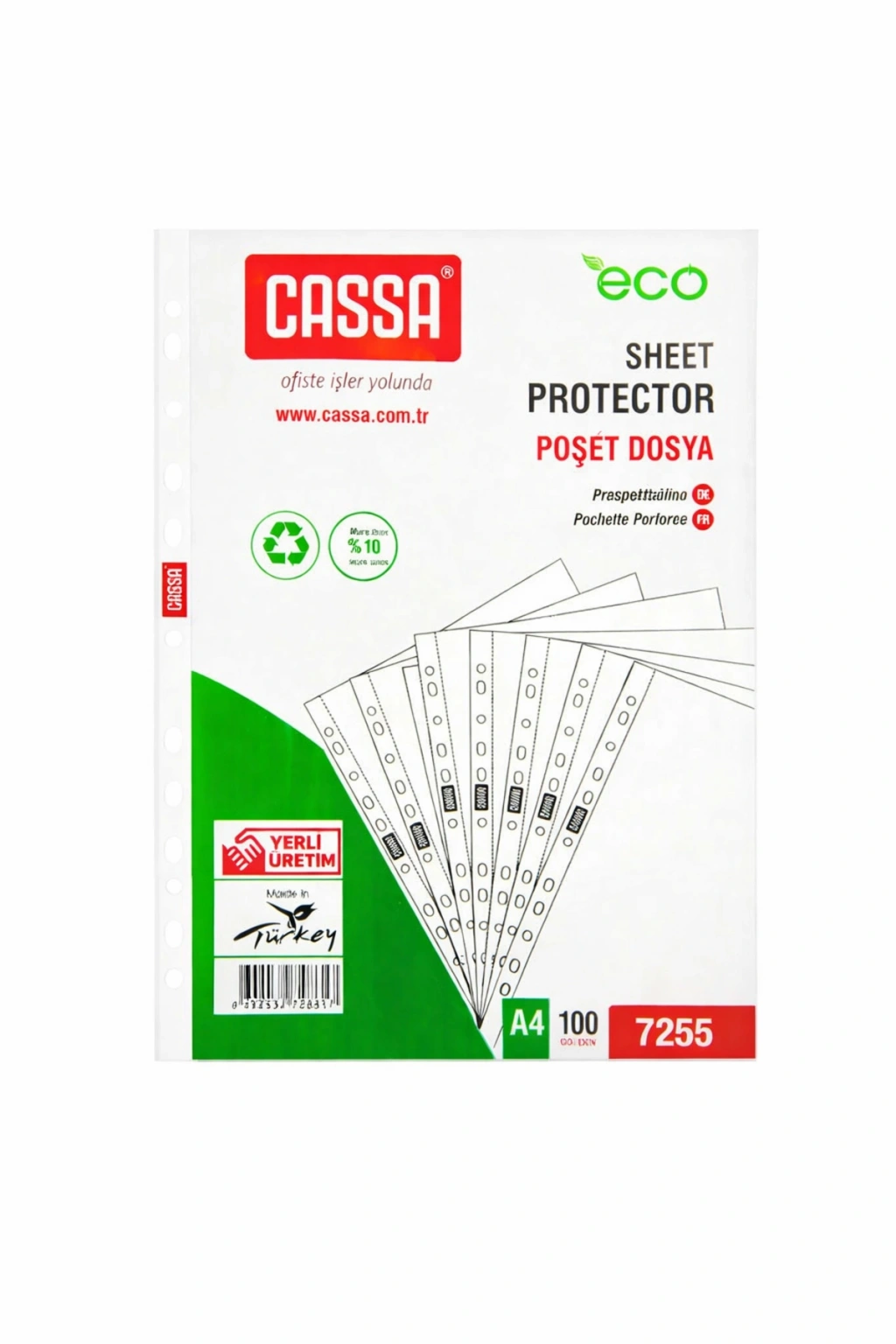 Cassa Poşet Dosya Eco 30 Micron 100 Lü A4 Şeffaf 7255