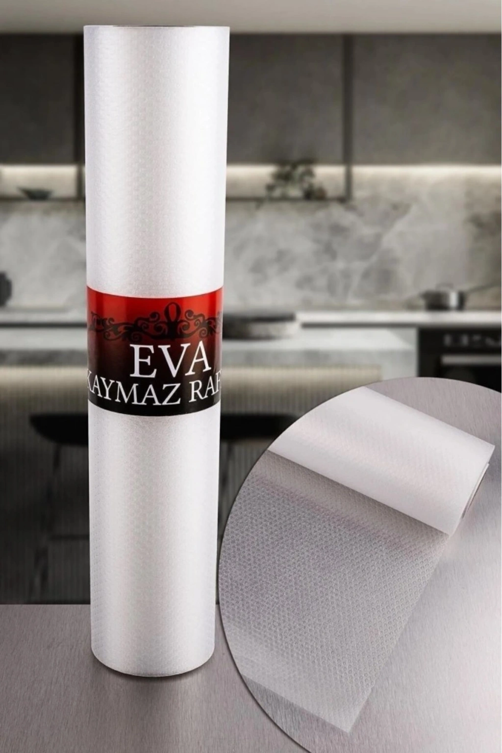 Eva Şeffaf Raf Örtüsü-Dolap Ve Çekmece İçi Kaymaz Kaydırmaz Örtü 45cm x 10metre Kaymaz,kaydırmaz Gıda temasına uygundur Dolap, çekmece,raf ,ayakkabılık,buzdolabı,amerikan servis örtüsü vb olarak kullanılır.; Yıkanabilir,silinebilir,leke tutmaz, temizliği kolaydır İstediğiniz ebatta kesim yapabilirsiniz Malzeme Plastik Renk Beyaz