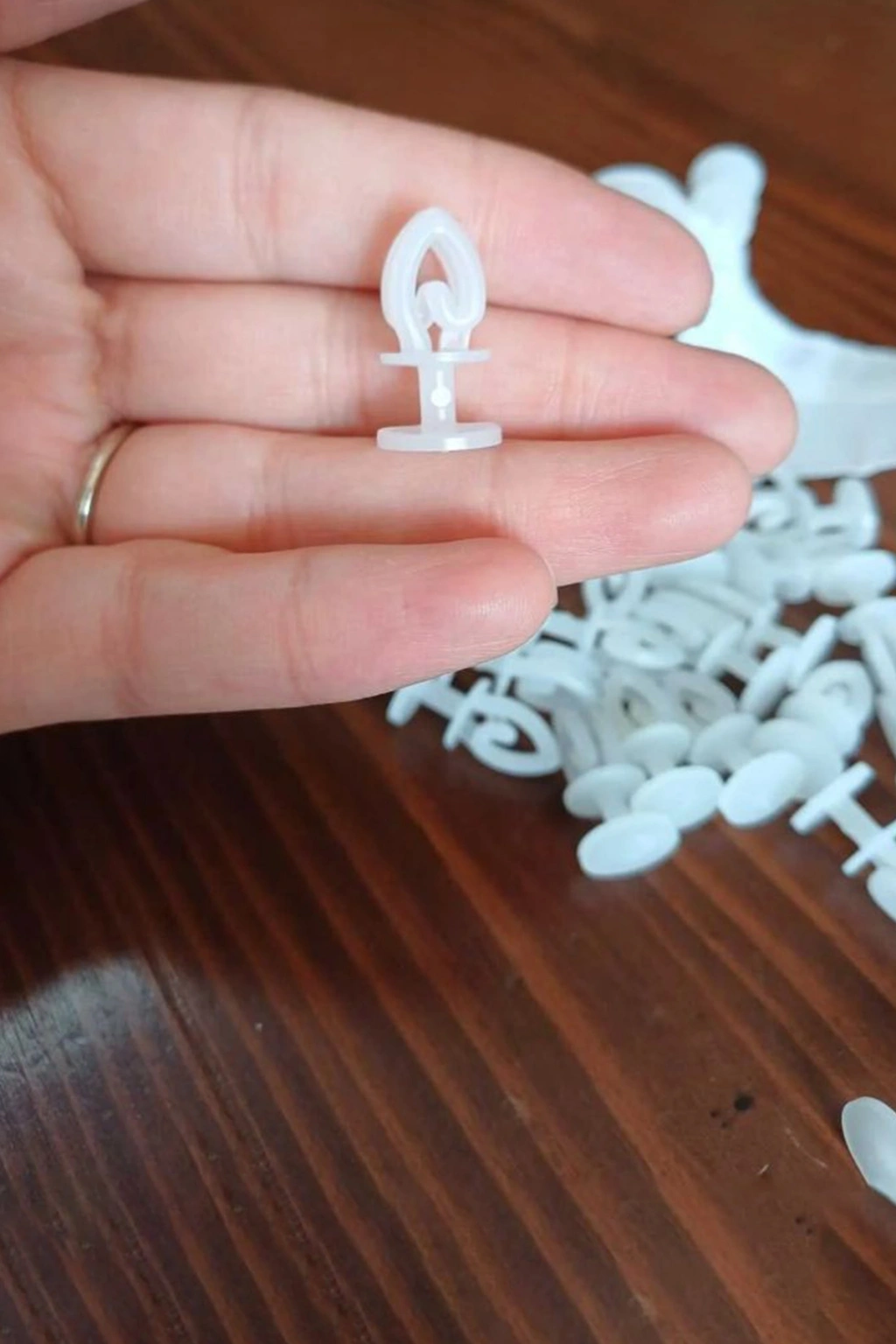- 05mm uzunluğunda, geçmeli tasarım sayesinde kolayca takılabilen ve çıkarılabilen perde ve tül düğmesi.; - Dayanıklı plastik materyalden üretilmiş olup, uzun ömürlü kullanım sunar.; - 50 adetlik paket içeriğiyle birden fazla perde veya tül için idealdir.; - Kompakt paket ölçüleri (4 cm derinlik ve 4 cm genişlik) sayesinde depolama kolaylığı sağlar.; - Perde düğmesi veya rulet olarak çok yönlü kullanım imkanı sunar; farklı ihtiyaçlara uyum sağlar.; - Türkiye menşeli olup, yerel üretim avantajlarıyla öne çıkar.; - Hafif yapısı (0 - 5 kg arası) ile kolay taşınabilirlik ve montaj kolaylığı sağlar.;