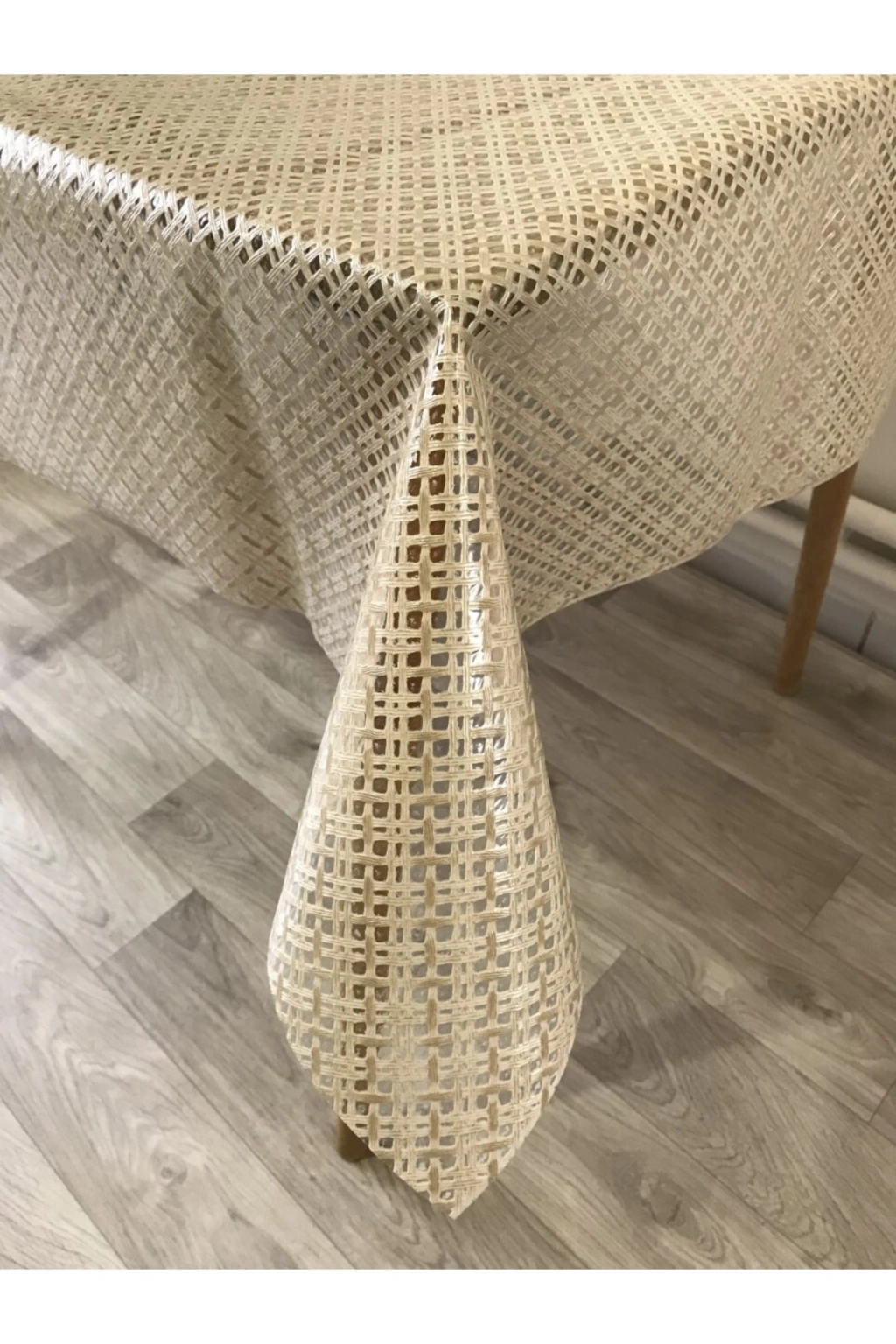 Hasır Desen Lüks Pvc Silinebilir Masa Örtüsü Krem
