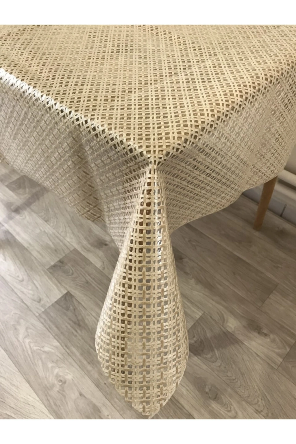 Hasır Desen Lüks Pvc Silinebilir Masa Örtüsü Krem