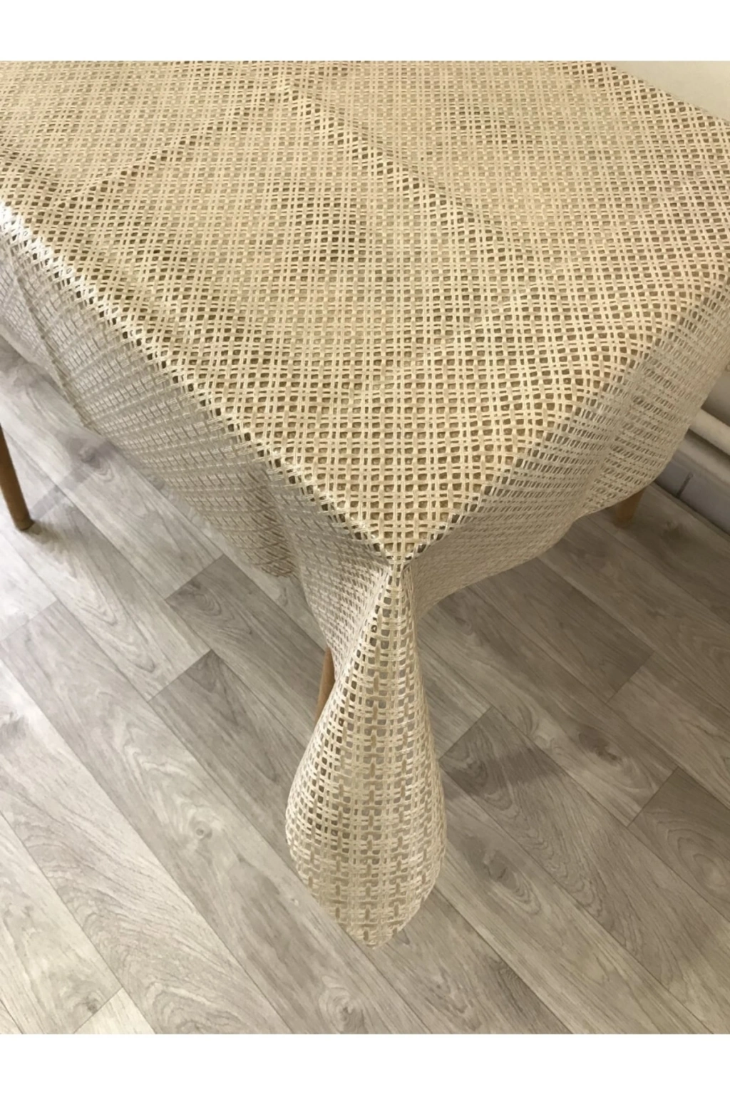 Hasır Desen Lüks Pvc Silinebilir Masa Örtüsü Krem