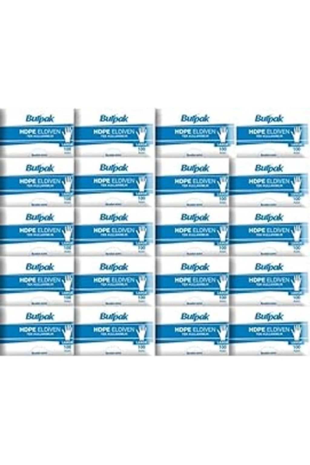 HDPE İş Temizlik Tek Kullanımlık Şeffaf Eldiven/Büyük Boy / 100 Adetlik 20 Paket - Koli