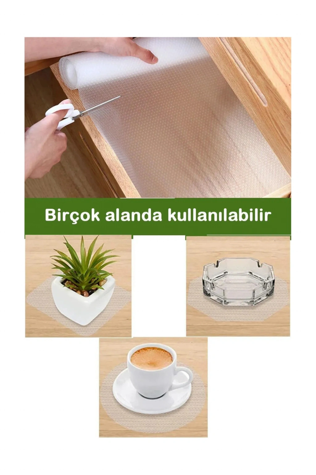 - Kaymaz yapısı sayesinde, dolap raflarınızda güvenli kullanım sağlar.; - 5 metre uzunluğundaki bu raf örtüsü, geniş alanları kaplamak için idealdir.; - 45 cm genişliğindeki bu örtü, çeşitli raf derinliklerine uyum sağlar.; - Plastik malzemesi ile hafif ve dayanıklı bir yapı sunar.; - Şeffaf rengiyle temiz ve şık bir görünüm kazandırır.; - Kolayca yıkanabilir olması pratik kullanım imkanı tanır.
