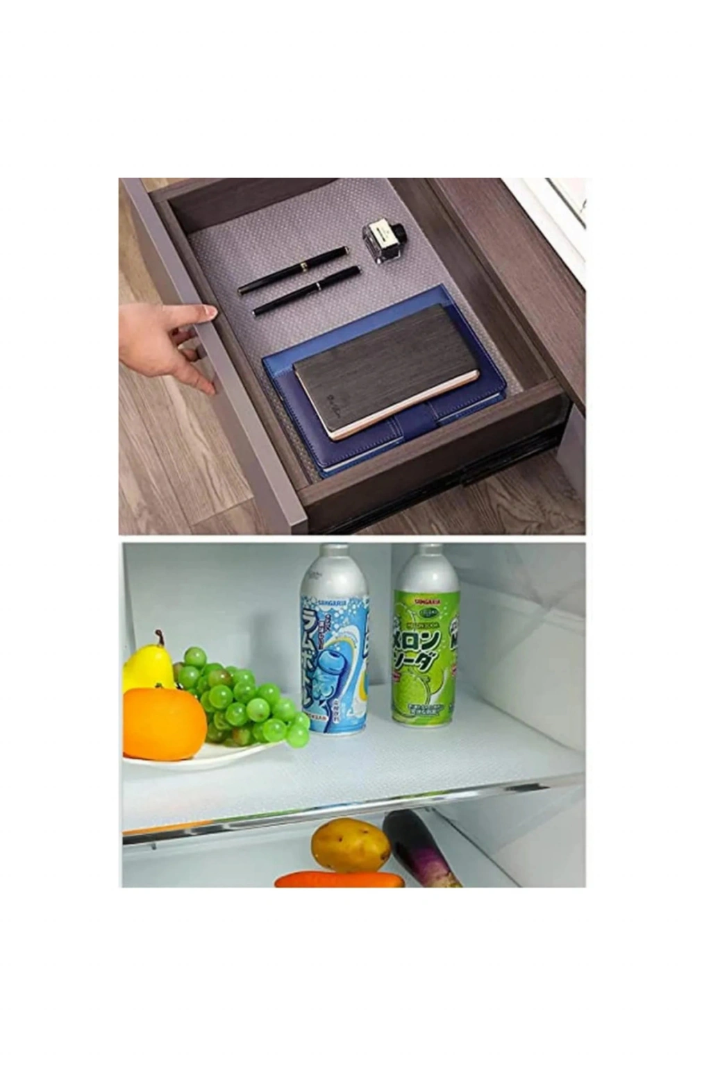 - Kaymaz taban özelliği sayesinde, raf örtüsünün yerinde sabit kalmasını sağlar ve güvenli kullanım sunar.; - 10 metre uzunluğundaki geniş yüzey alanı ile raflarınızı kolayca kaplayarak eşyalarınızın düzenli ve tozdan korunmuş olmasını sağlar.; - 45 cm genişliğindeki bu raf örtüsü, standart raflara mükemmel uyum sağlar ve estetik bir görünüm kazandırır.; - Kolay temizlenebilir yapısıyla pratiklik sunar; yıkanabilir ve silinebilir olması sayesinde hijyenik bir ortam oluşturmanızda yardımcı olur.; - Tek parça halinde gelen bu ürün, montaj gerektirmeden hızlıca kullanıma hazır hale gelir.; - Dayanıklı plastik materyali ile uzun süreli kullanım vaat ederken, aynı zamanda çevre dostu bir seçenektir.; - Üretiminde kullanılan malzemelerin Türkiye'de üretilmesiyle yerel ekonomiyi desteklerken kalite standartlarından ödün vermez.