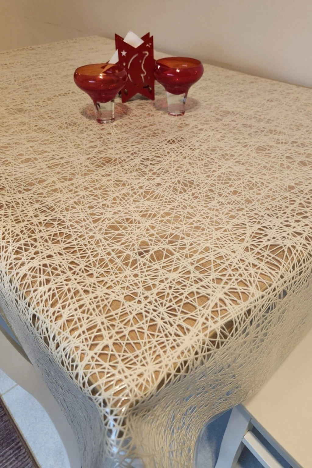 Krem Ithal Pvc Muşamba - Desenli Silinebilir Masa Örtüsü