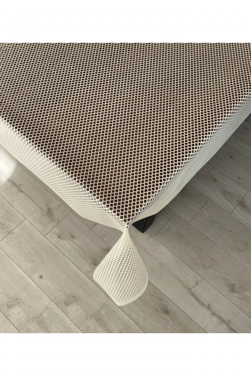 Petek Desen Lüks Pvc Silinebilir Masa Örtüsü Krem