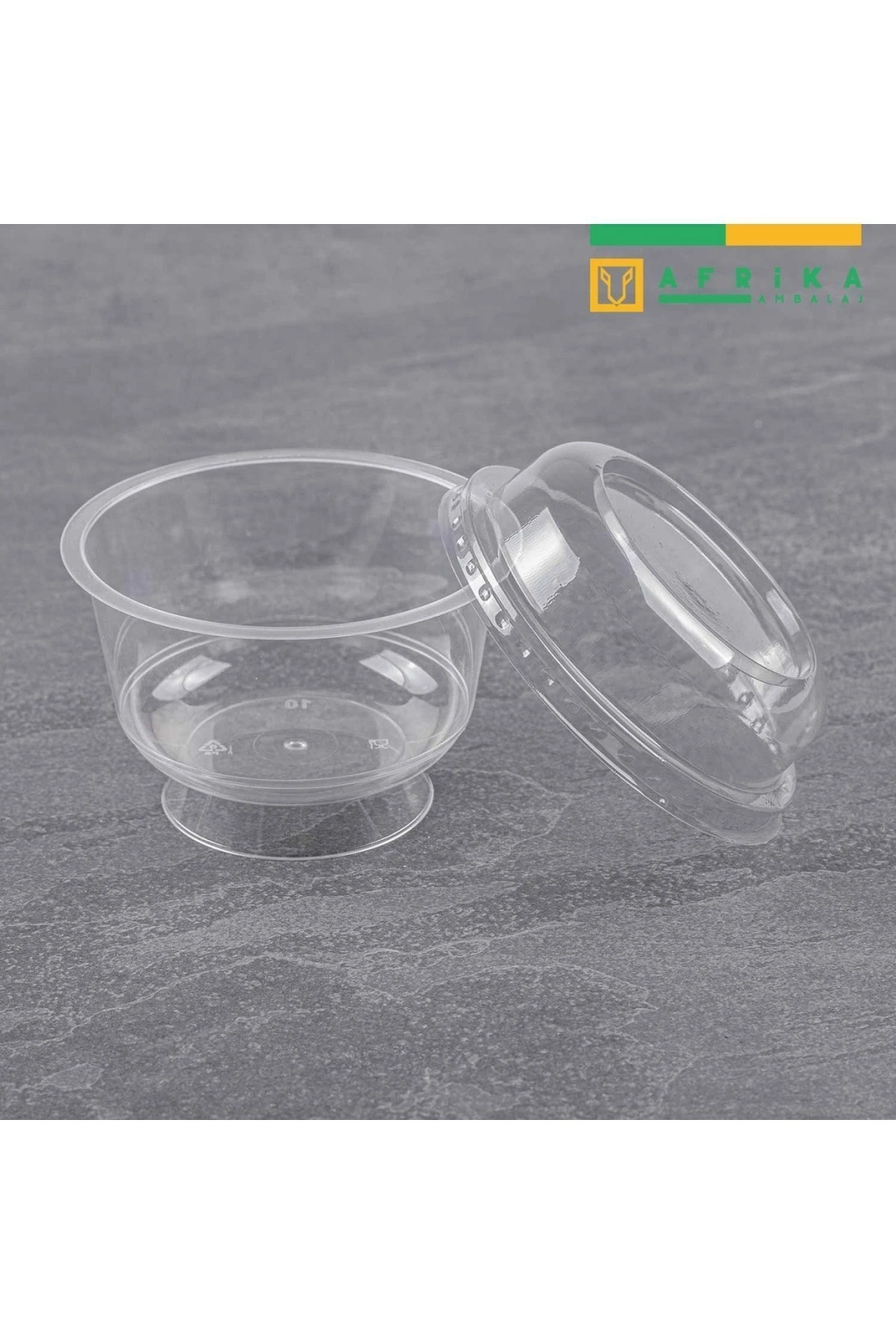 - 180cc kapasiteli plastik kristal tatlı kabı, şık ve modern tasarımıyla mutfaklarınızda yerini alır.; - Ayaklı yapısı sayesinde kolayca yerleştirilebilir ve temizliği pratiktir.; - Kapaklı tasarımı ile tatlılarınızı taze tutar ve mikroplara karşı koruma sağlar.; - Kullan-at özelliği ile hijyenik bir kullanım sunar; böylece her kullanımda yeni bir kap kullanabilirsiniz.; - Renk seçeneği olarak "Diğer" ile mutfak dekorasyonunuza uyum sağlayacak renk seçeneği sunar.