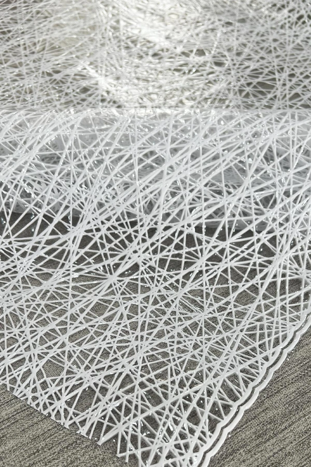 Desen:Şeffaf yüzey üzerine  ip desenlizarif bir tasarım eklenmiştir.  Beyaz renk, sadelik ve şıklığı bir arada sunar, her ortama uyum sağlar.