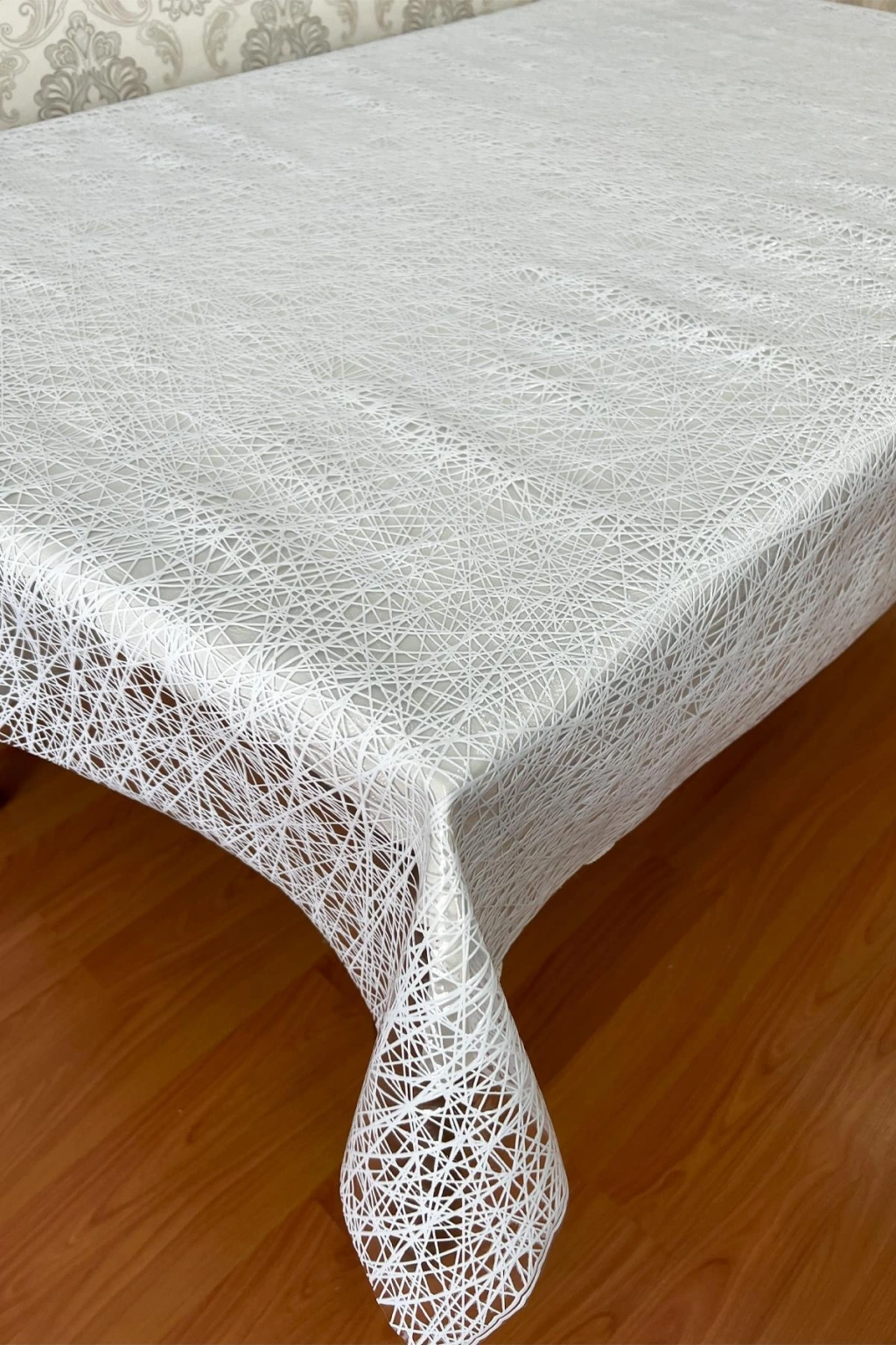 Bu beyaz renkli PVC şeffaf kaplamalı ip desenli masa örtüsü, hem şık hem de işlevsel bir çözüm sunar. Masanızı korurken zarif ve modern bir görünüm sağlar.