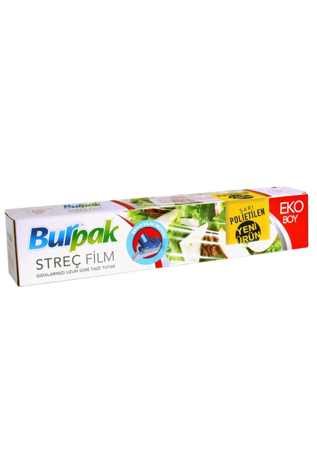 Burpak Streç Film EKO - Sarı Etiket Renk : Şeffaf Sarı Form : Rulo Özellik : Wrap En : 45 Cm. Uzunluk : 166 Metre Kalınlık : 9 Mikron Gıdaya Uygun 10 Paket Kesme Bıçağı Kutu İçindedir