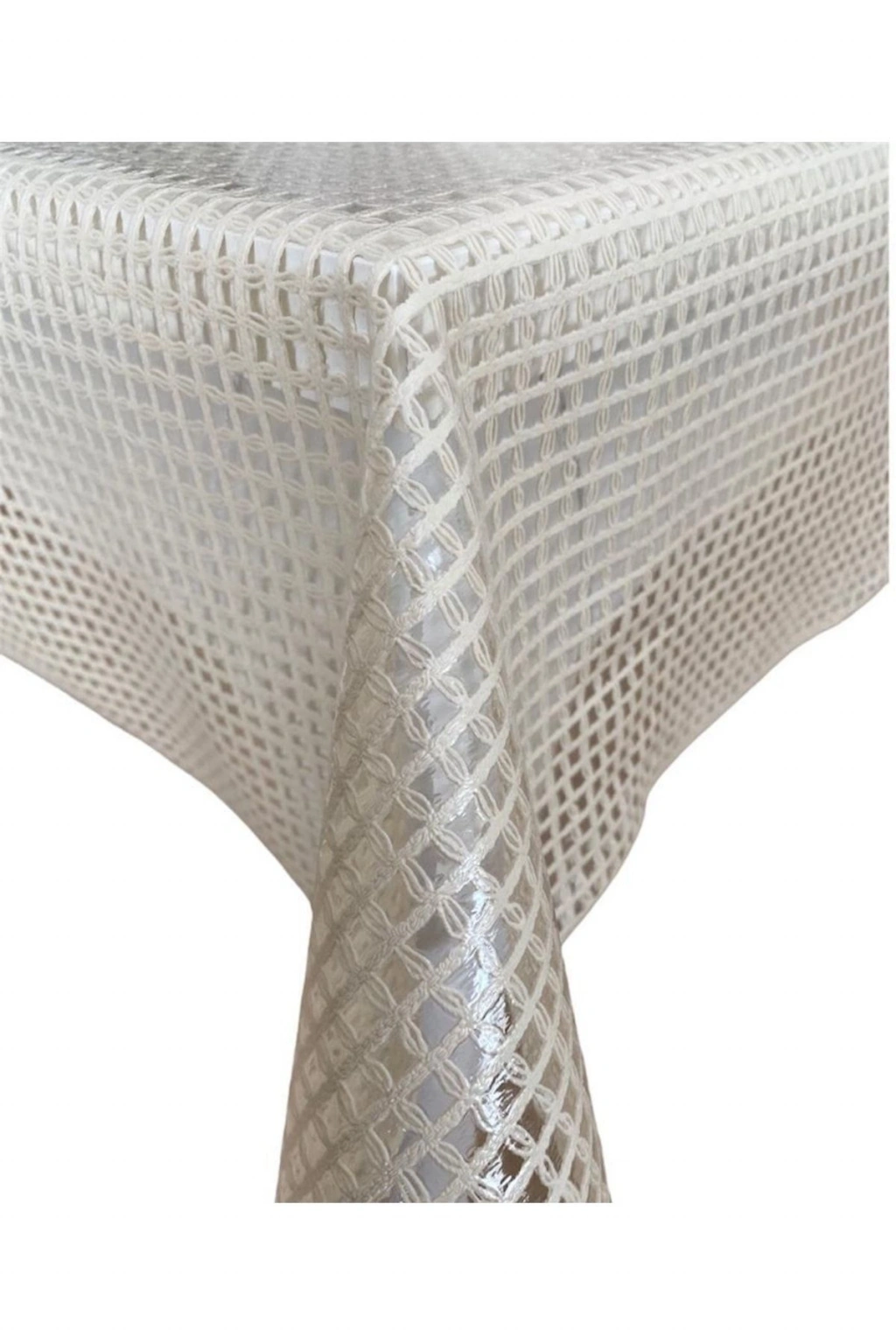 Şeffaf Kaplamalı Örgü Hasır Desenli Pvc Muşamba Masa Örtüsü Krem