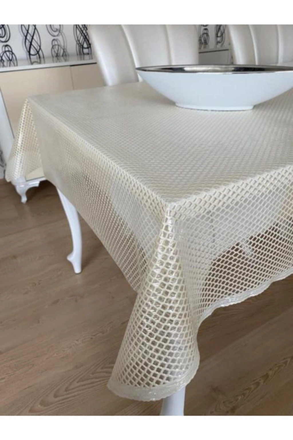 Şeffaf Kaplamalı Petek Desenli Pvc Muşamba Masa Örtüsü Krem