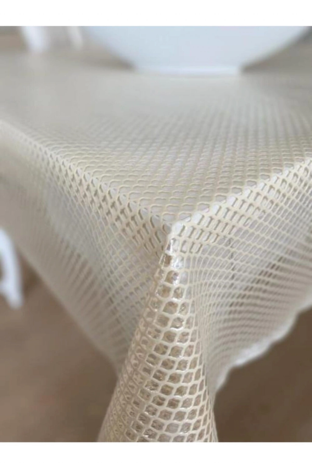 Şeffaf Kaplamalı Petek Desenli Pvc Muşamba Masa Örtüsü Krem