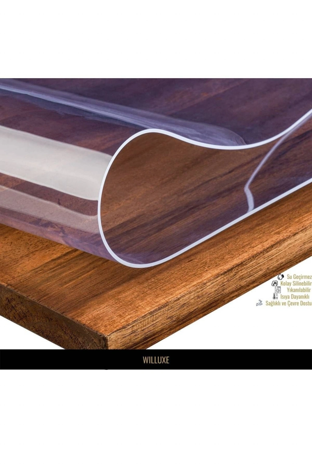 Dikdörtgen formu ile çeşitli masa boyutlarına uyum sağlar ve kolayca yerleştirilebilir; 1; 4 mm kalınlığındaki PVC malzemesi, dayanıklılığı artırırken şeffaf yapısıyla masanızın doğal görünümünü korur; Şeffaf tasarımı sayesinde, masa yüzeyindeki lekeleri ve izleri gizler, temizliği kolaylaştırır; Plastik materyali ile hafif ve esnek bir kullanım sunar, masa hareketlerinde rahatsızlık vermez;