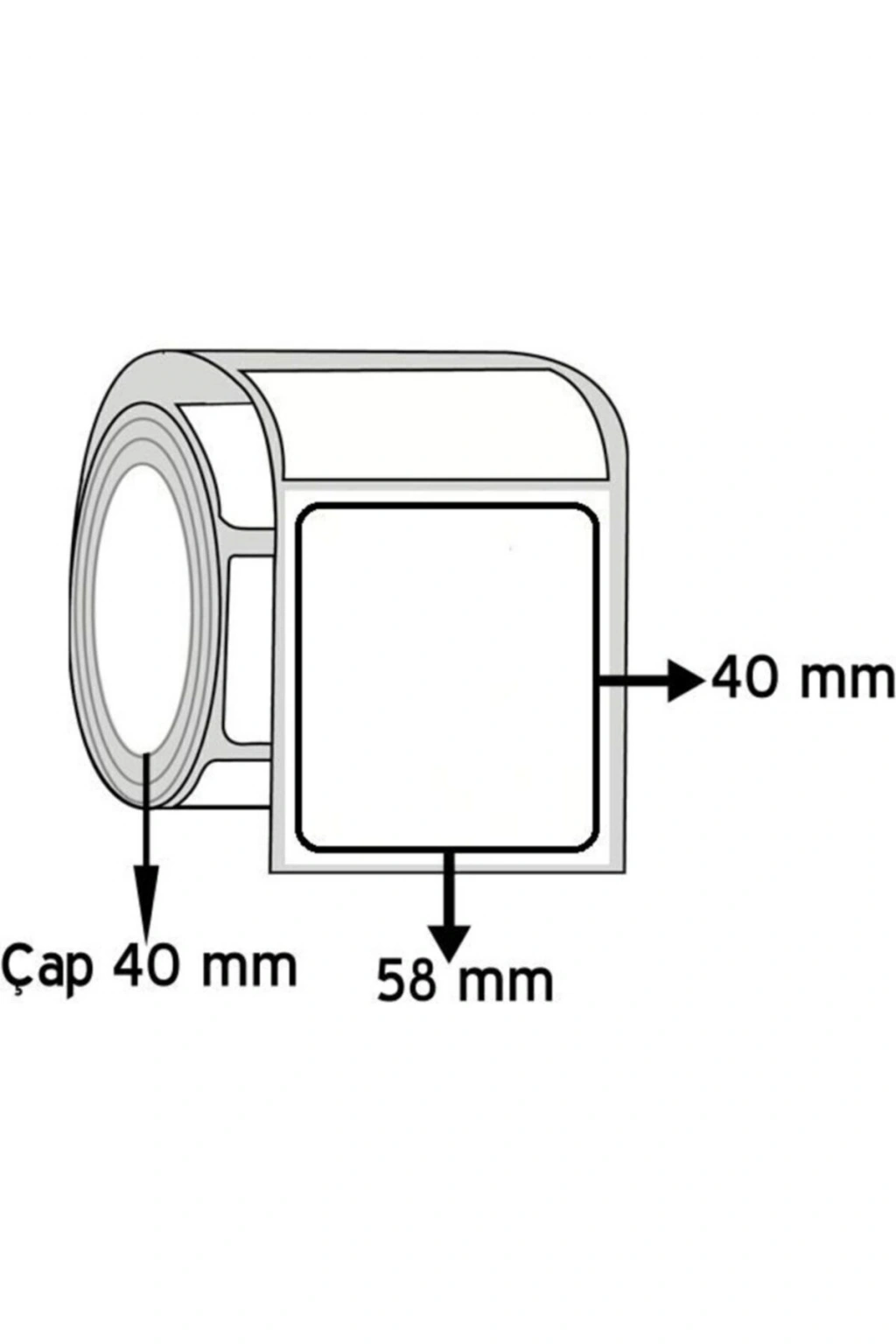 En: 58mm (sağdan sola) Boy: 40mm (yukarıdan aşağıya, akış yönü) 1 Rulo: 500 adet etiket 1 Koli: 100 Rulo Toplam: 50.000 adet ; Cas, Digi, Densi, Dibal, Bizerba, Tem.; vb her türlü terazi ve Argox, Zebra, Tec, Godex.; vb.; her türlü barkod yazıcı ile uyumlu kullanılabilen Eko Termal özellikli barkod etiketi ;