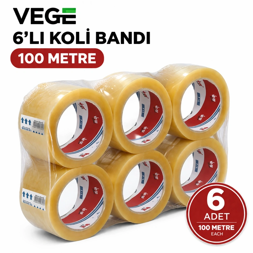 Vege 6’lı Koli Bandı 100 Metre – Güçlü ve Dayanıklı Paketleme Çözümü